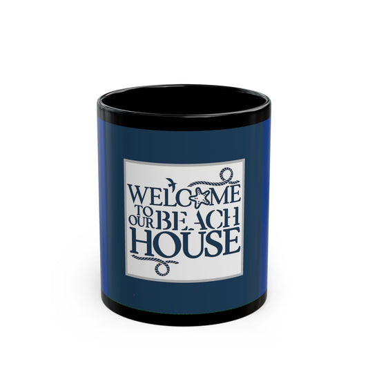 Navy Blue Welcome to our Beach House - 11 oz or 15 oz Ceramic Black Mugs
