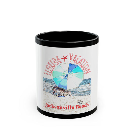 Florida Vacation - Jacksonville Beach - 11 oz or 15 oz Ceramic Black Mugs 11 oz or 15 oz Ceramic Black Mugs
