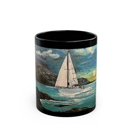 Tropical Sailing- 11 oz or 15 oz Ceramic Black Mugs