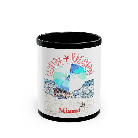 Florida Vacation Miami- 11 oz or 15 oz Ceramic Black Mugs