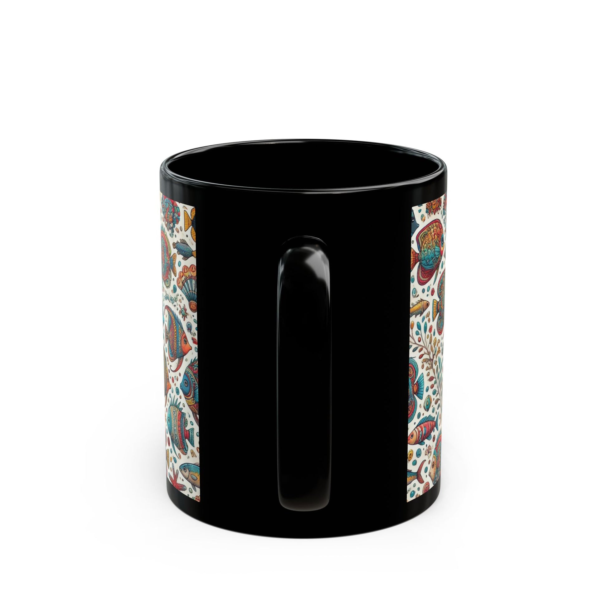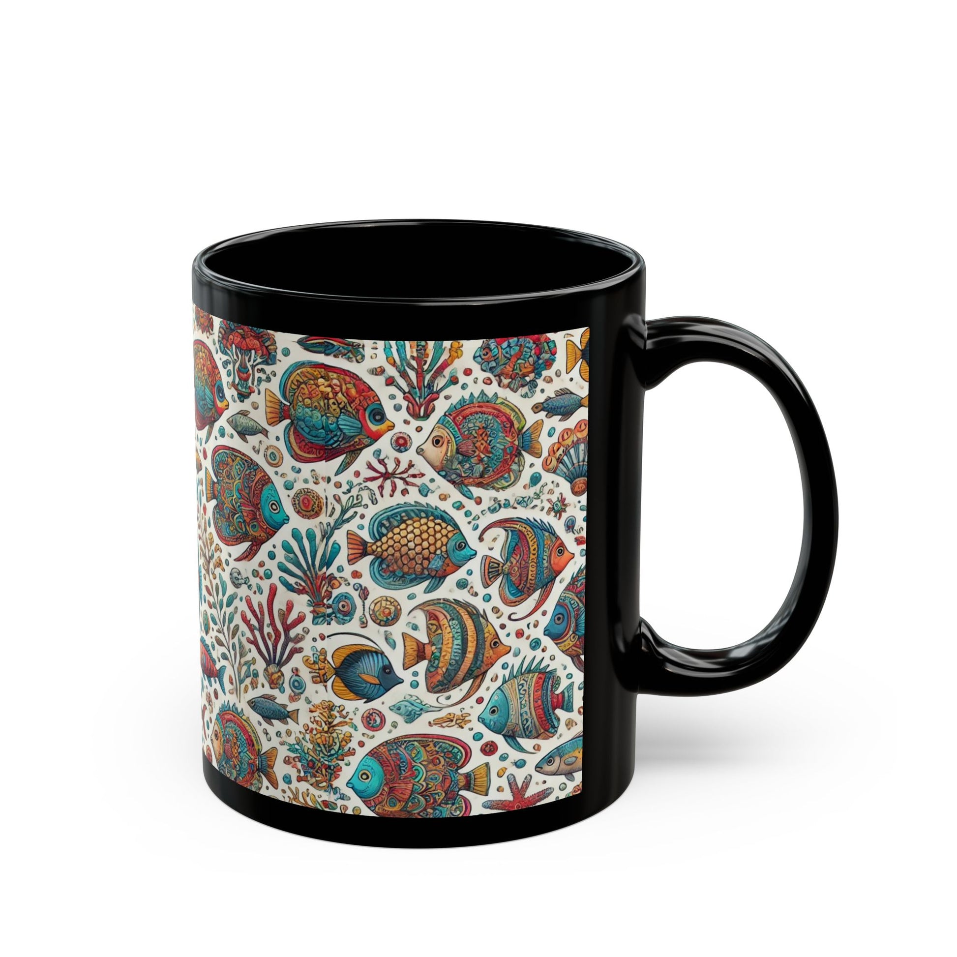 Fishes of the Sea- 11 oz or 15 oz Ceramic Black Mugs