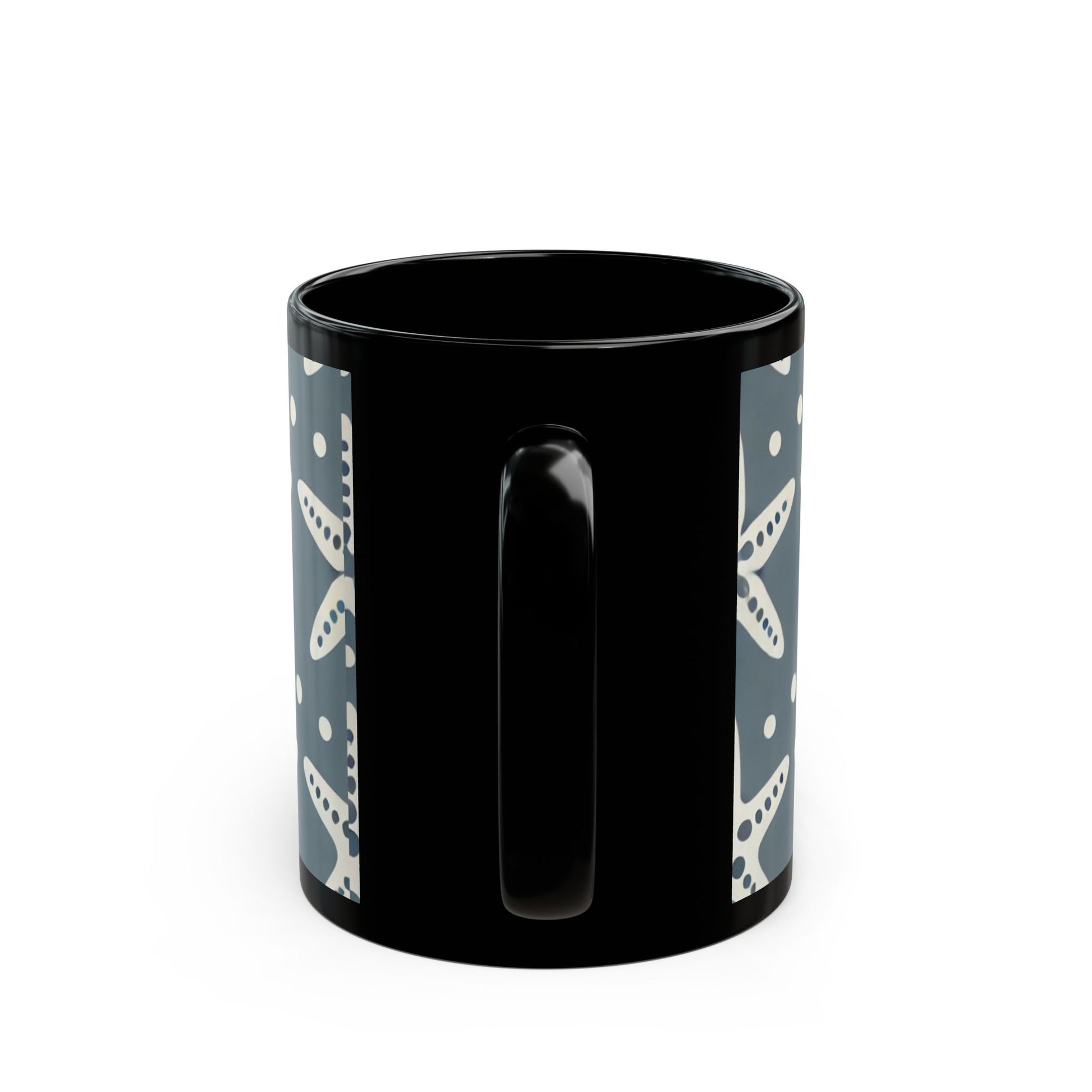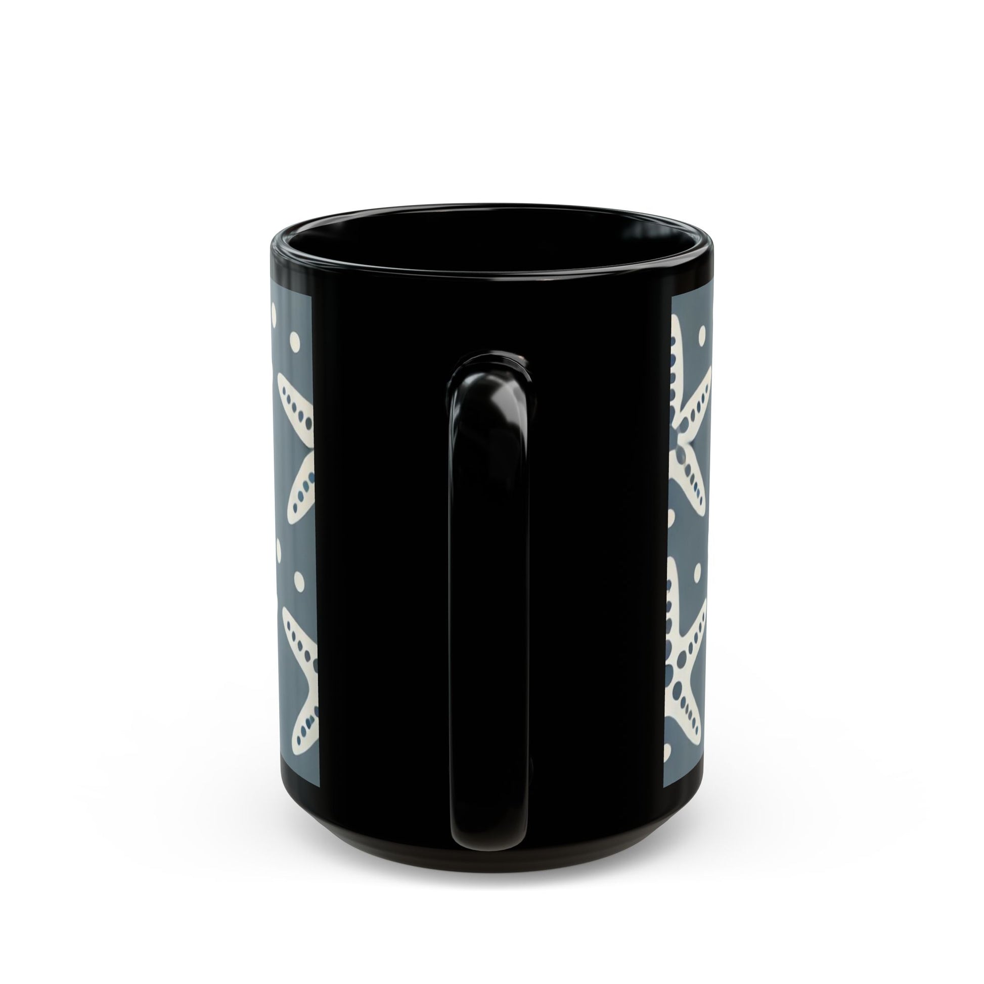 Modern White Starfish- 11 oz or 15 oz Ceramic Black Mugs